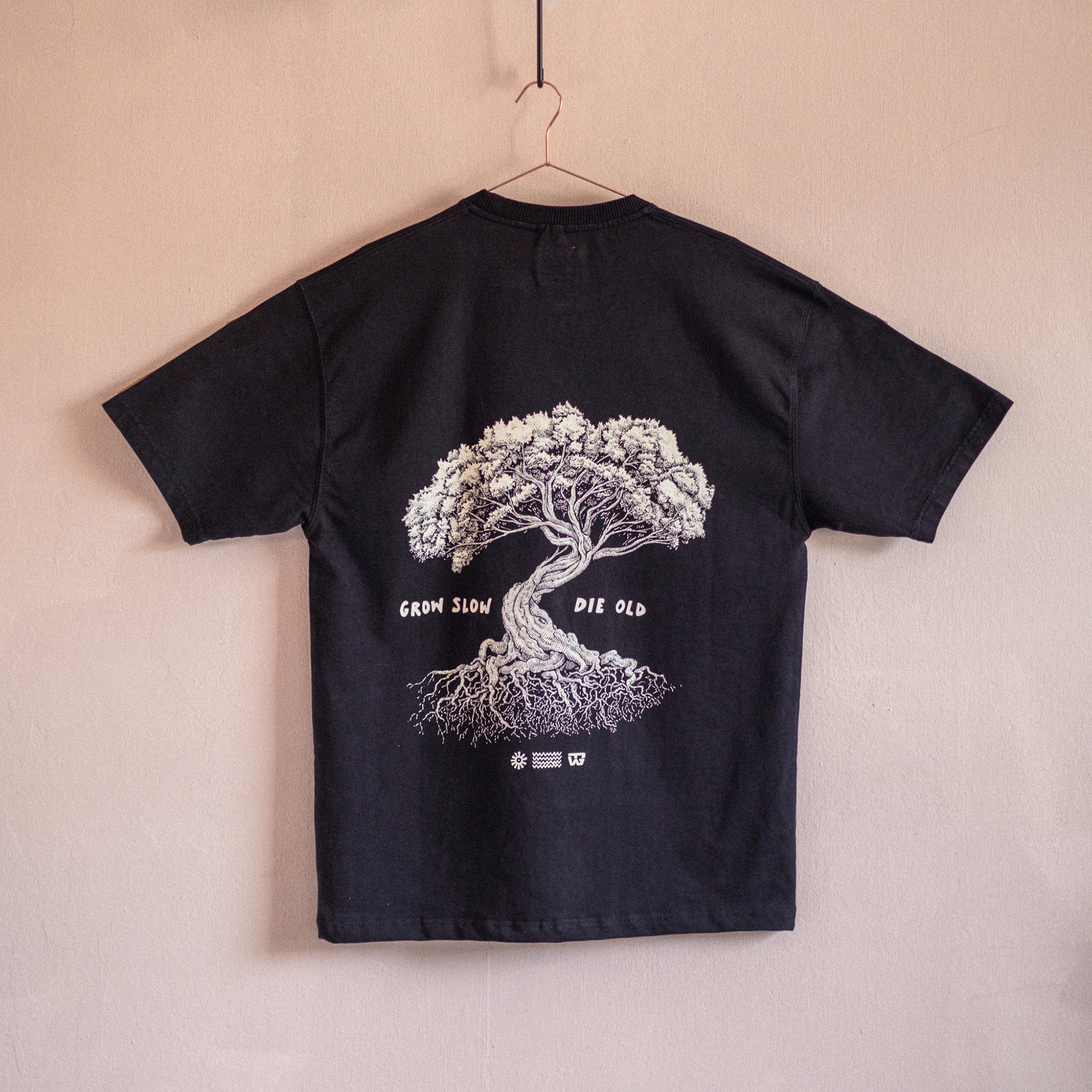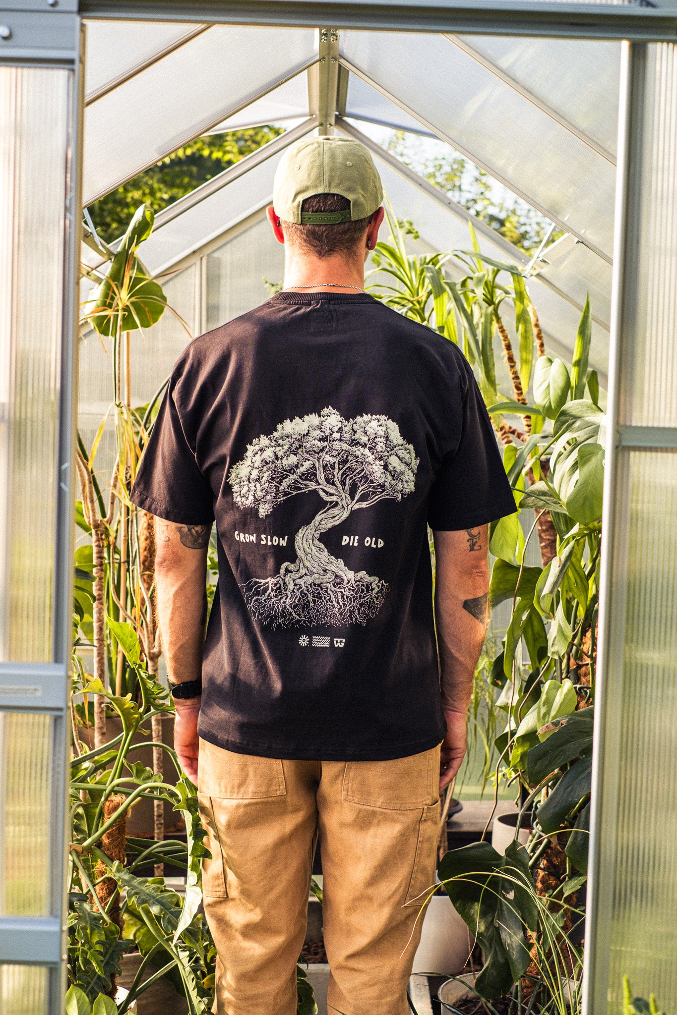 Unser Grow Slow Tree Tee ist ein idealer Begleiter für jeden Tag. Es ist aus schwerem und kompaktem Single Jersey aus 100% Bio-Baumwolle in Portugal gefertigt und hat eine lockere Passform für uneingeschränkte Bewegungsfreiheit. Am Hals ist das Tee mit einer dickeren 2x2-Rippe versehen. Auf der Vorderseite sind unsere drei Logos aufgedruckt, die Rückseite zeigt einen riesigen Baum, der wie alle unsere Grafiken und Illustrationen von uns selbst gezeichnet werden. Bitte beachten Sie, dass es bei jedem Artikel leichte Farbunterschiede gibt, da diese stückgefärbt wurden. Daher kann die Farbe je nach Trageverhalten und Waschen variieren.