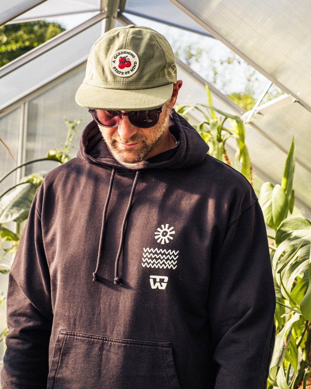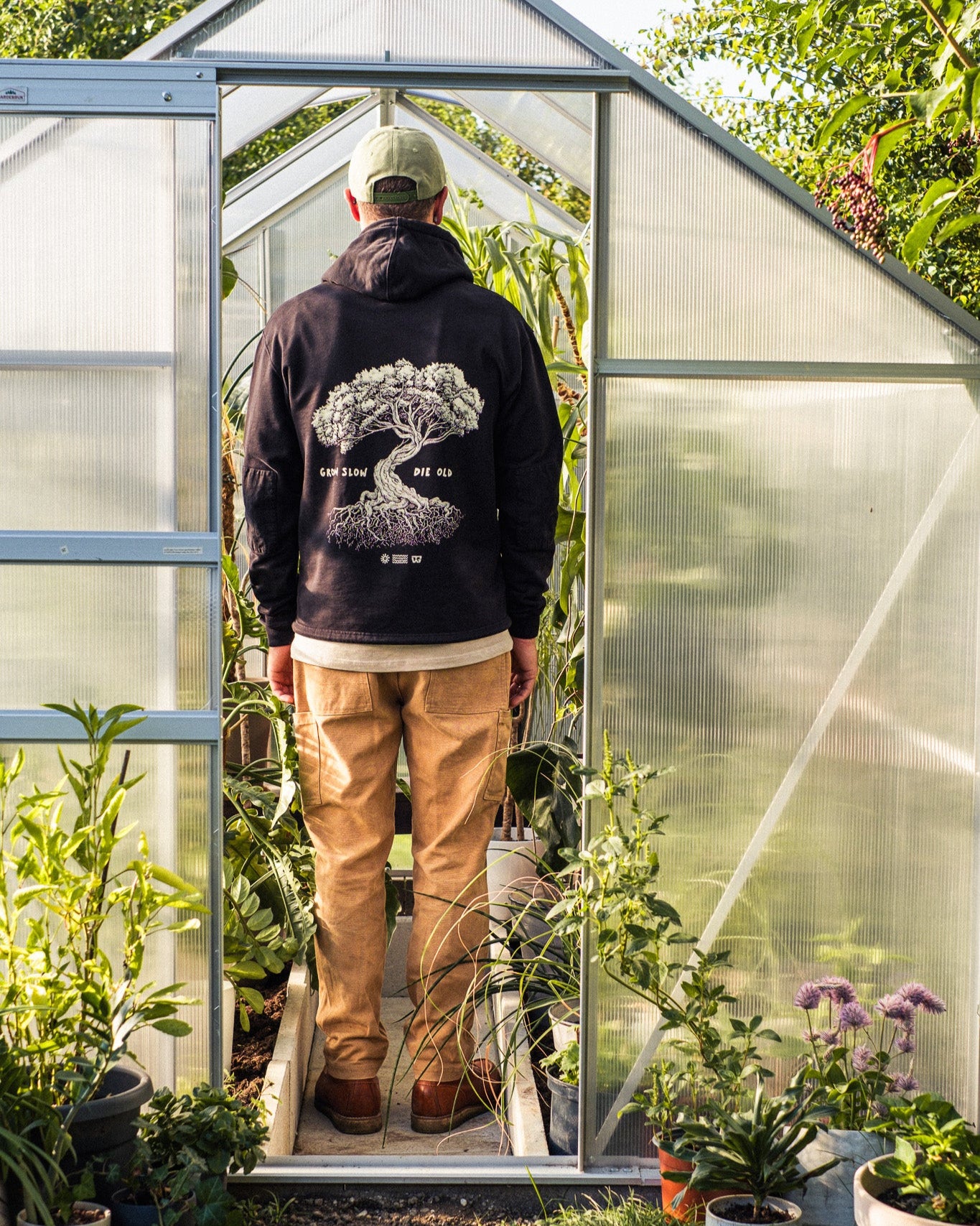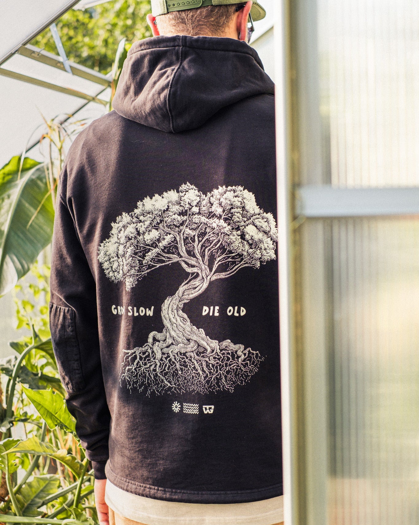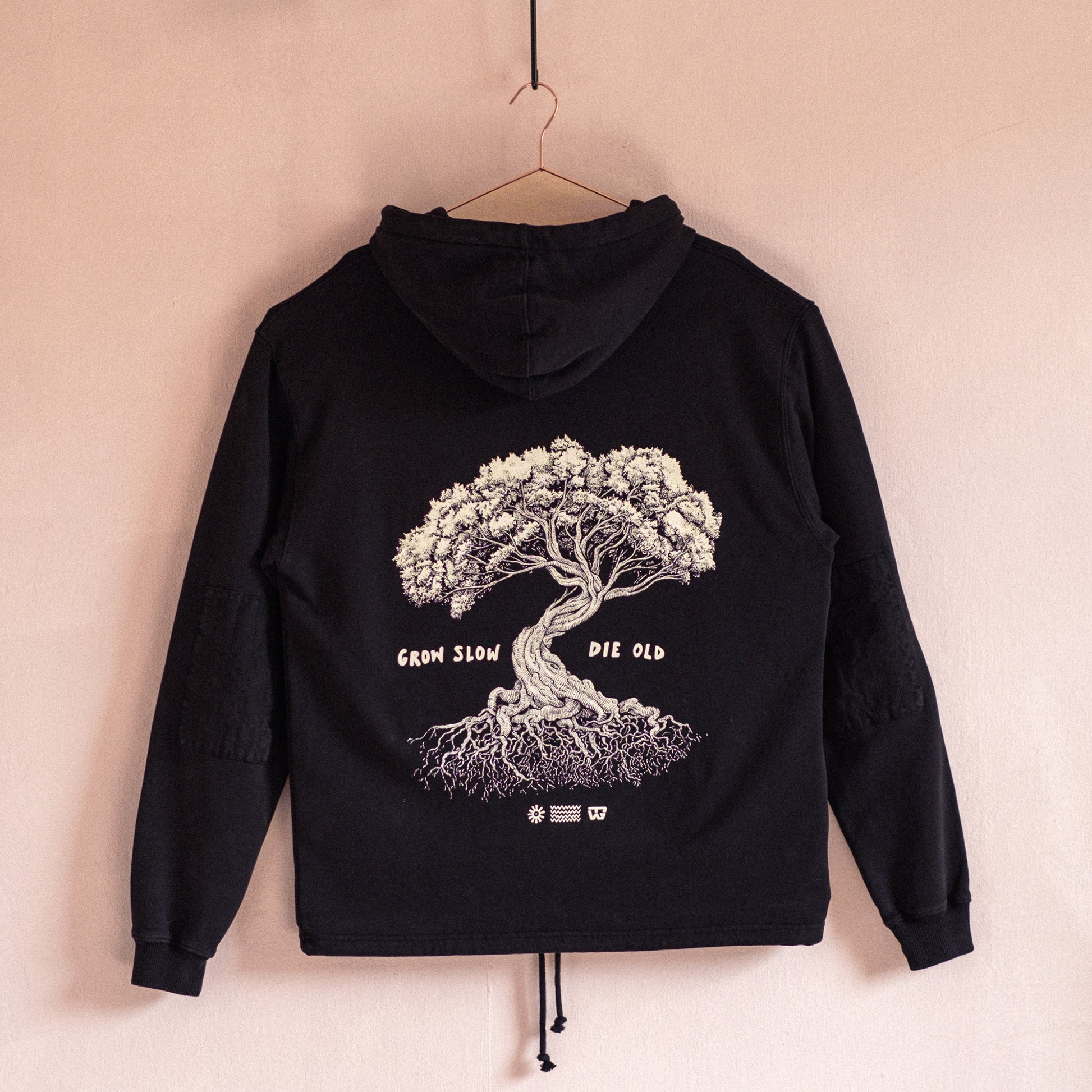 Grow Slow Tree Cotton String Hoody Shadow Black