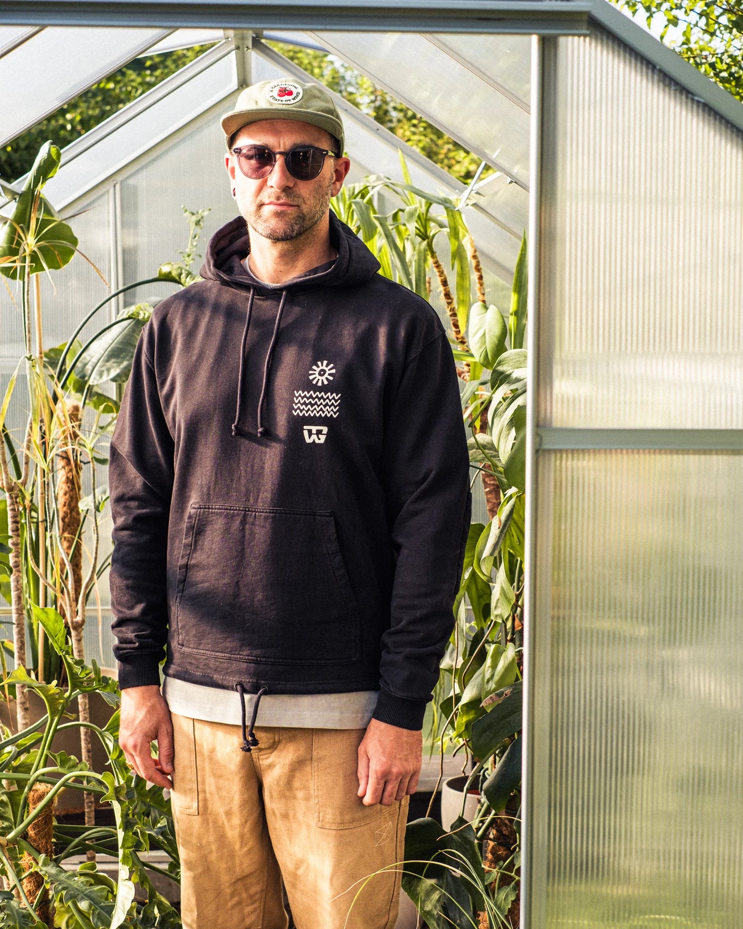 Our Grow Slow Tree String Hoody is an everyday companion made of 100% organic cotton in Portugal. The fabric is a terry in a medium weight. Without the brushing we can make sure it is almost lint-free and a staple item which can be worn for various occasions. The fit is relaxed for optimized movement and is based on an old beloved band merch hoody. There are organic cotton drawstrings to adjust the double-layered hood as well as the hem. The elbows are reinforced with canvas patches. Front comes with a three icons print, the back features a huge tree illustration, as all our graphics and illustrations, made in-house. Please note, there are slight colour differences for each piece as they were overdye. Hence the colour can also vary according to your wearing and washing.