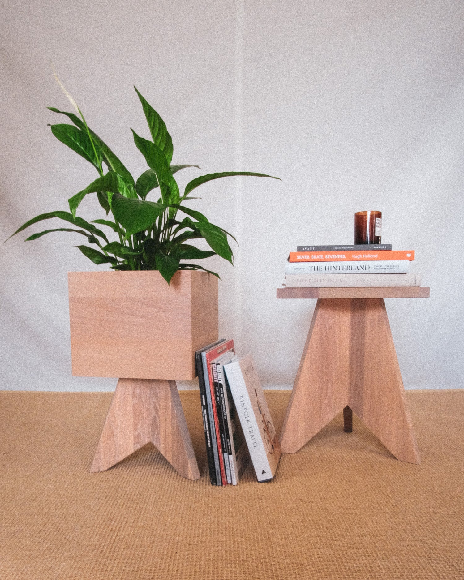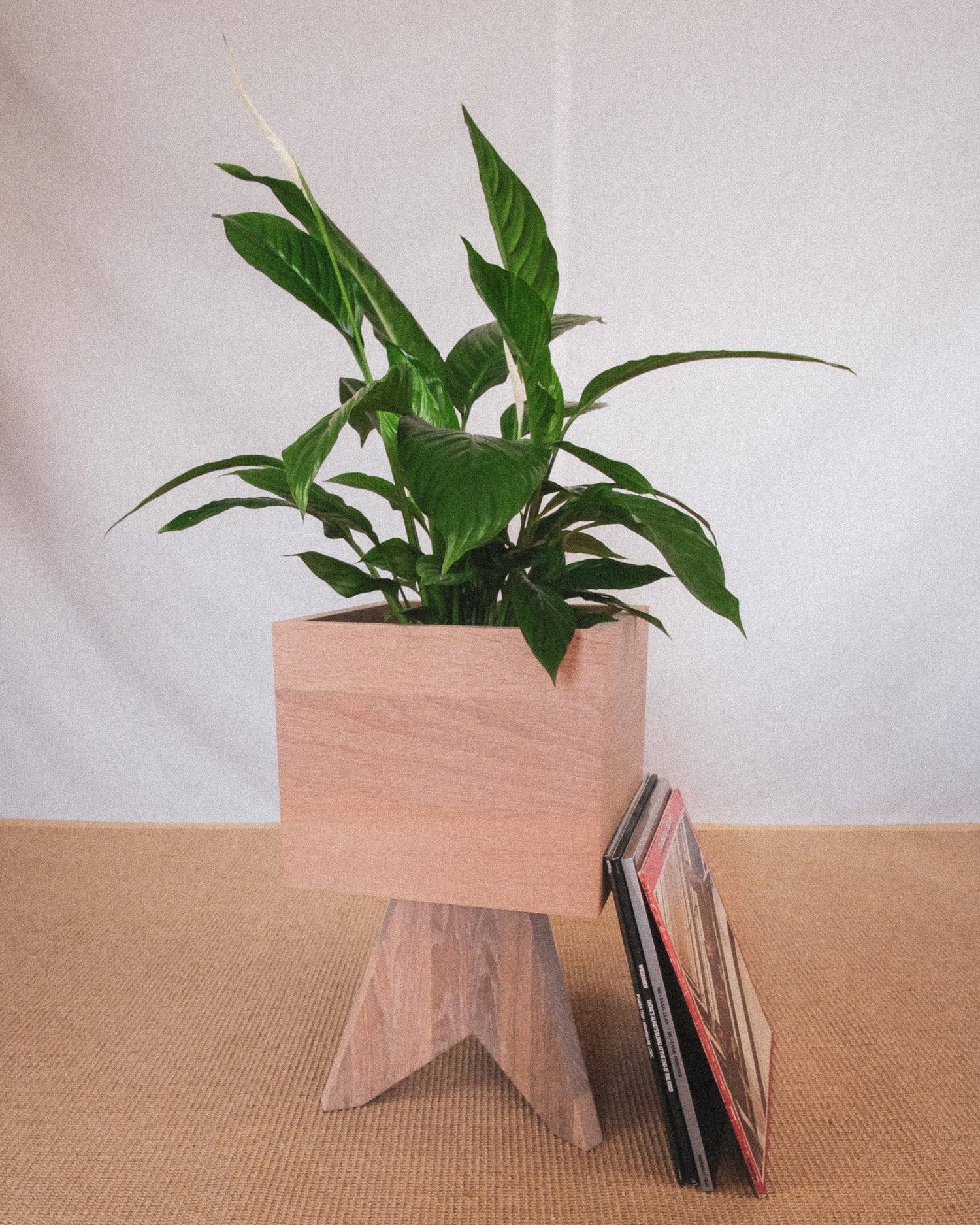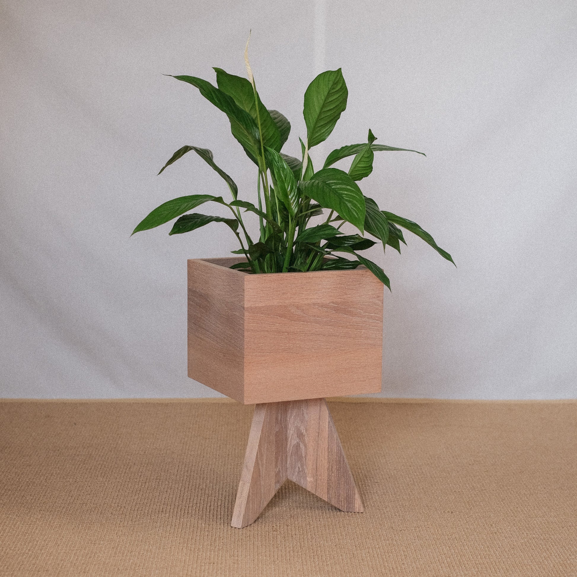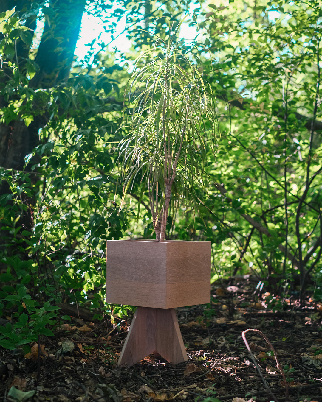 The three legged planter is expertly handcrafted in Germany from light oiled local oak wood by HOLDHOLD.