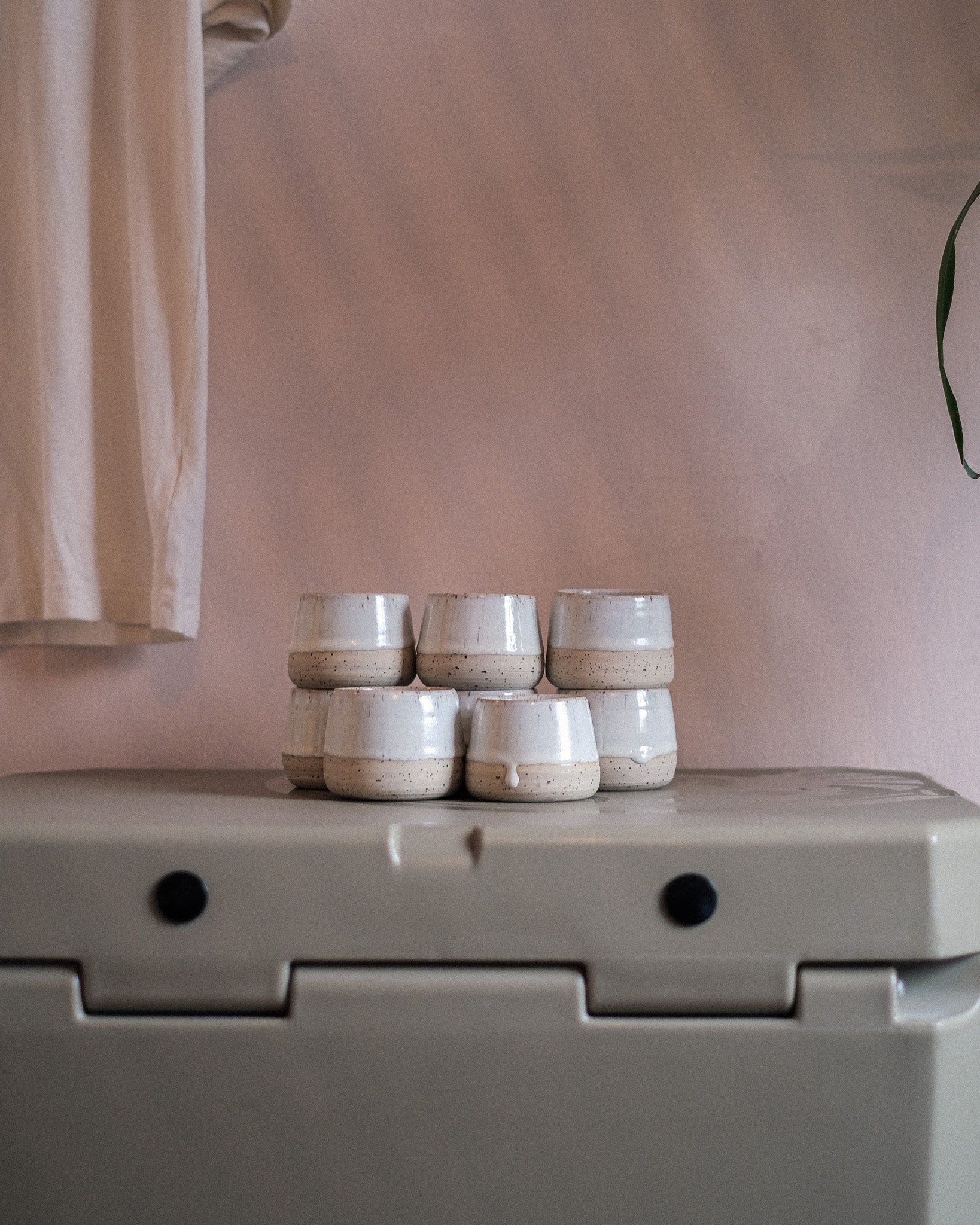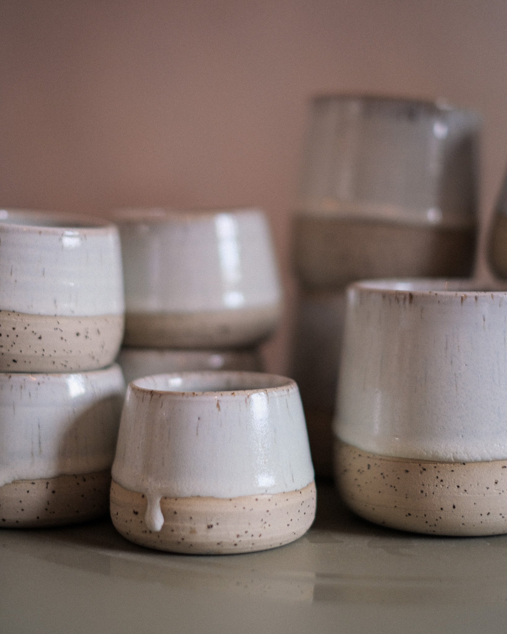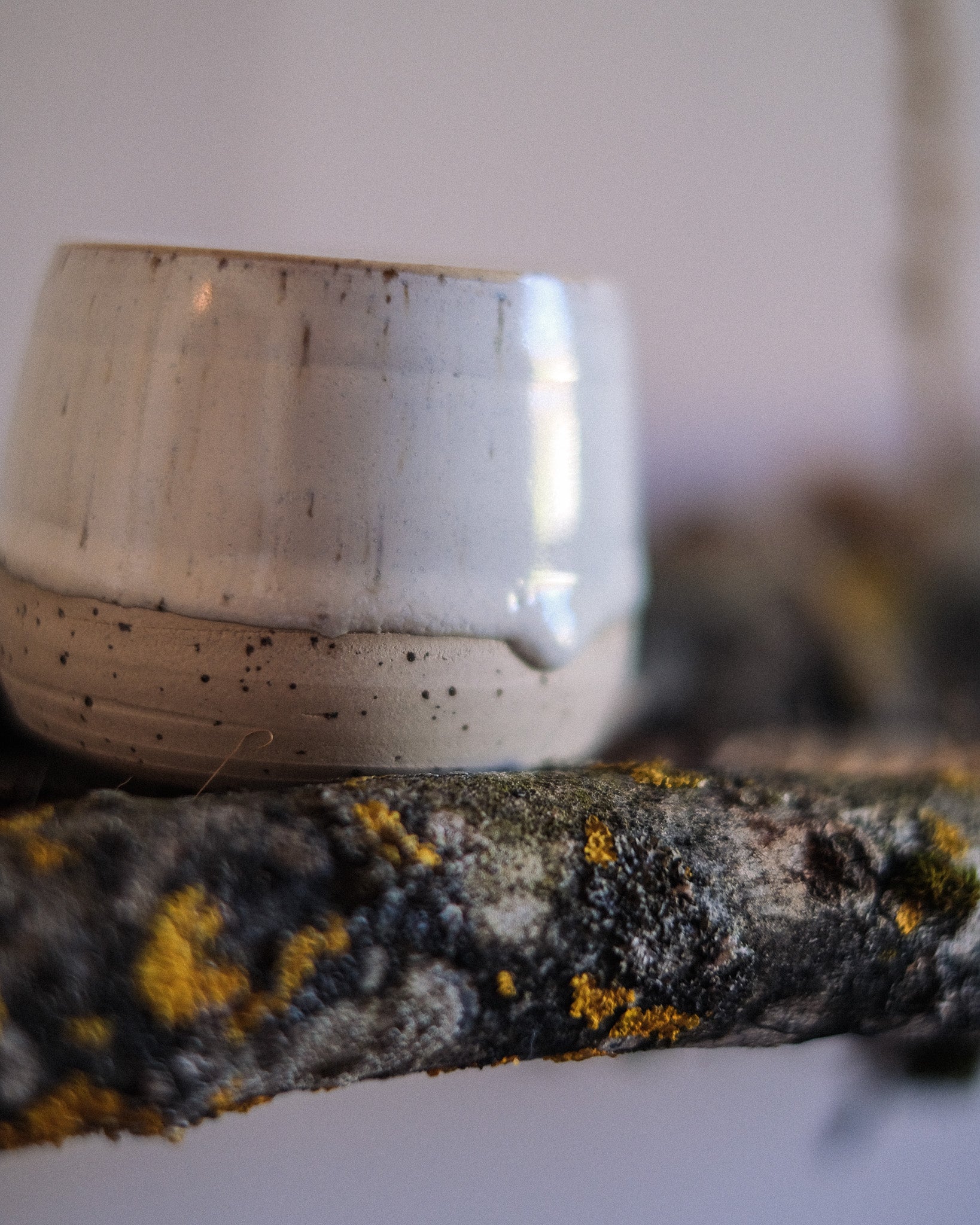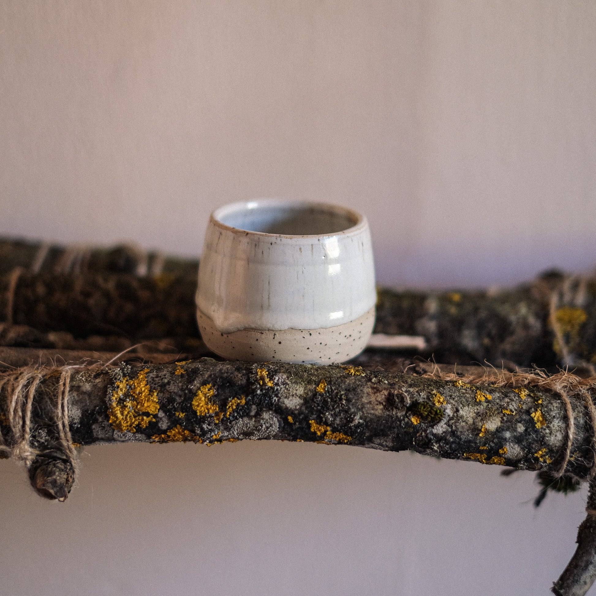 A lovely tiny hand-thrown cup for your coffein shot, a warming tea or a delightful sip of sake.